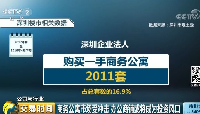 2017年初至今年4月下旬,深圳企业法人购买一手商务公寓2011套,占总套数的16.9%。