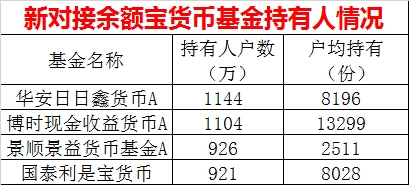 新对接的货币基金持有人户数也在1000万户左右,其中,华安和博时两家公司的产品户数超过1100万。