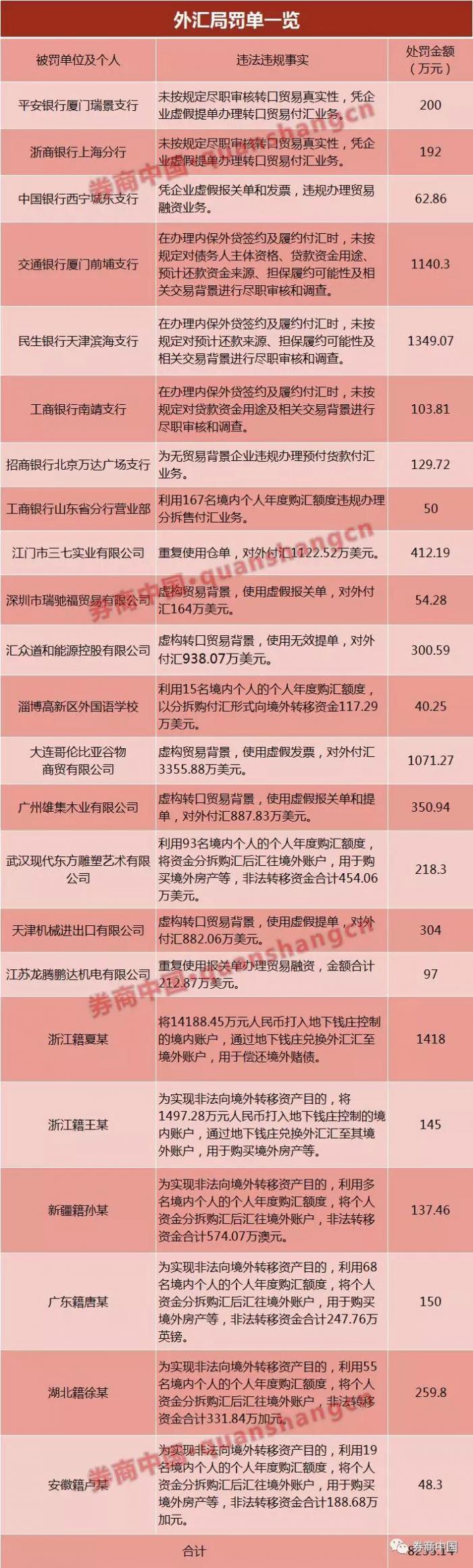 不过,8月31日,外汇局通报的外汇违法违规案例上榜的均是清一色的国有大行和股份制银行,数量达到7家。