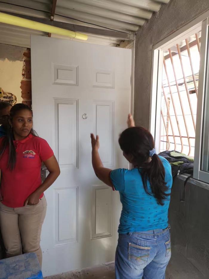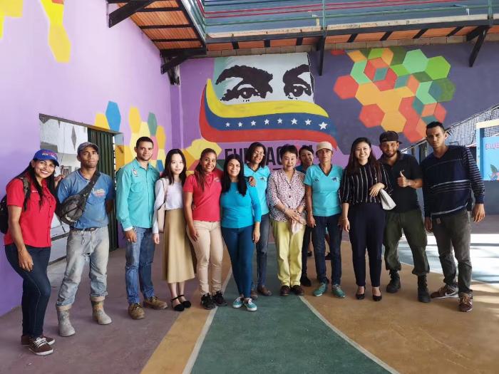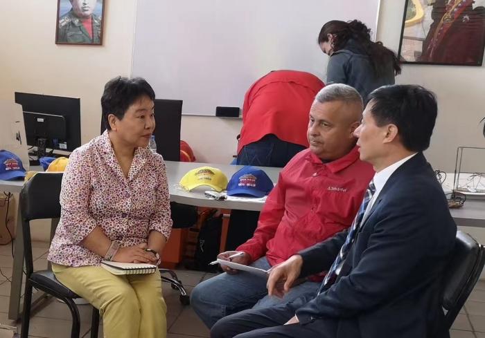 上午采访了新三色大使命计划主席劳尔·巴莱德斯将军(下图中间穿红衣者),他毕业于中国国防大学。将军介绍说,新三色使命计划目前已经在24个州改造了86.6万套住房,“查韦斯总统与马杜罗总统的21世纪社会主义的基石是人民,住房改造项目目前有1.5万名志愿者参加,体现了为人民与人民的参与。”他特别提到这项计划中与三一重工的合作,“他们提供了5000套机械设备,保障‘新三色大使命计划’的顺利实施。”