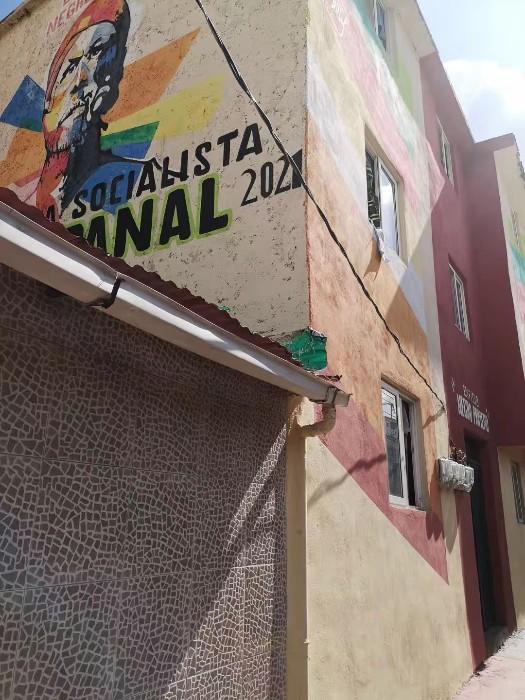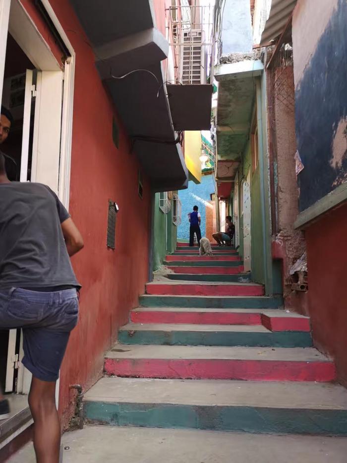 下午我们前往其中一个贫民区——蜂巢2021社区,这是委内瑞拉“新三色大使命计划”的样本工程,社区有居民1972人。狭窄的胡同已经铺上水泥路面,并建设了排水设施。整个社区使用城市供水、供电,每家每户都有现代化卫生设施,社区有垃圾收集站,政府为贫民区提供了完备的公共服务。