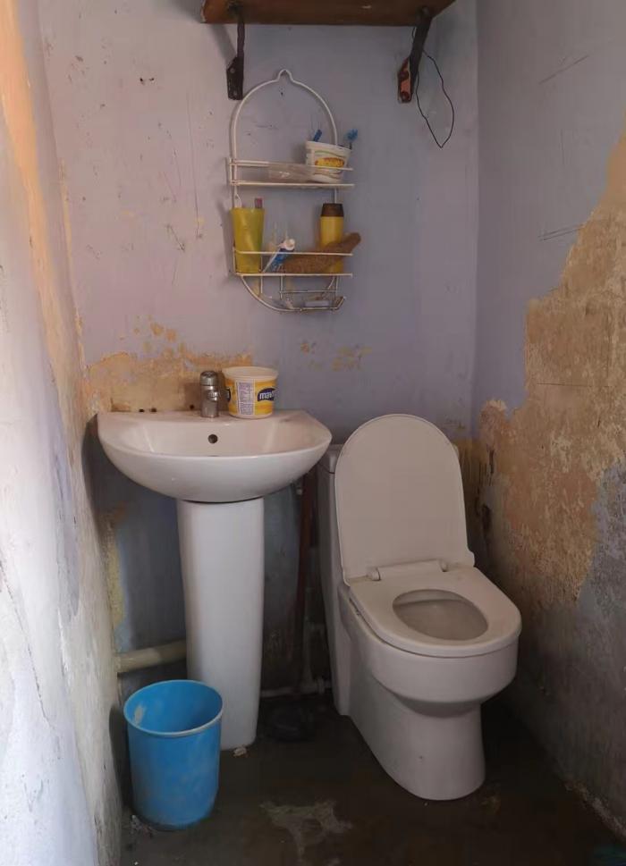 卫生间已经新装洗手盆和马桶。