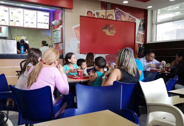 中午我们在加拉加斯的肯德基就餐,6人共消费了900强势玻利瓦尔(新推出的当地货币),相当于人民币60元。