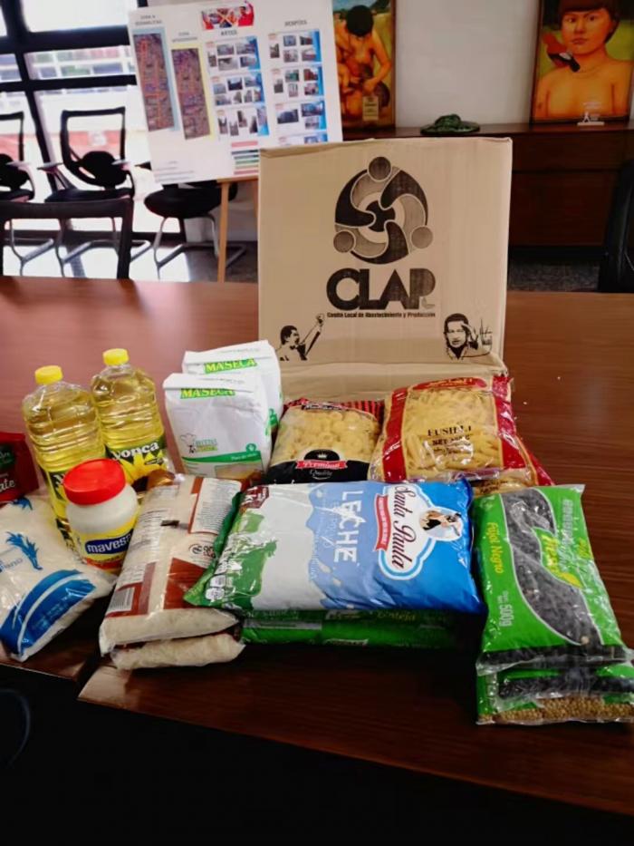 除此之外,今天有幸在新三色大使命计划总部看到大名远扬的“食品箱”,这是委内瑞拉以社区为单位向全体民众免费发放的食品。