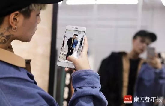 既是老板也是模特。试穿服装时,黄梦选好角度拍摄全身像。