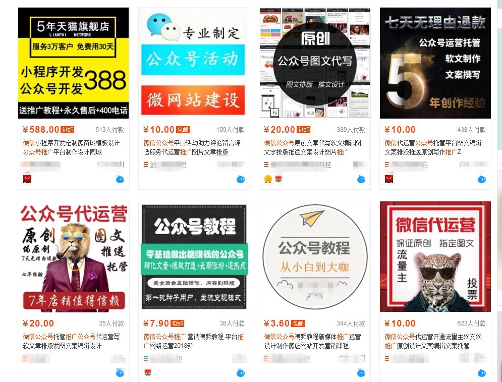 为了流量,各色运营服务便应运而生。随手一搜,如今在网店里,随随便便就可以买到这些所谓的推广服务。曾经明目张胆的“微信加粉”“刷阅读量”“加点赞数”等服务,如今“换脸”成“公众号托管运营”,通过隐蔽包装逃避被下架的风险,但本质上的传播刷量、马甲灌水、粉丝交易并没有变化。