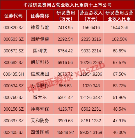 A股研发投入排行榜:这些公司的研发投入超过九成公司净利润