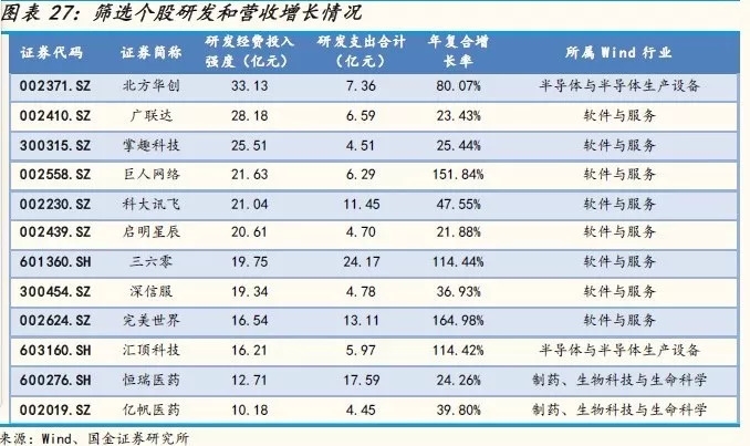 二是寻找被选行业研发龙头,研发支出占行业前10%、研发经费投入强度大于10%;