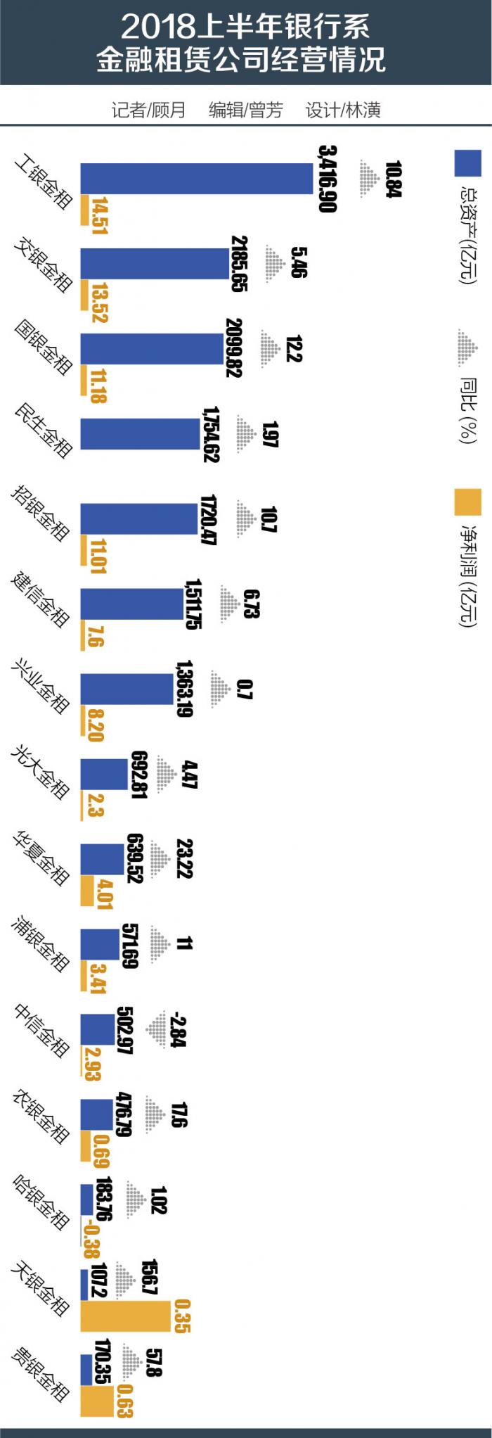 另值得注意的是,受到财务准则调整影响,上半年有包括国银金租、哈银金租等在内的6家金租公司净利润与去年同期相比出现负增长,如哈尔滨银行旗下的哈银金租上半年净亏损人民币3800万元,而去年同期则为净盈利6100万元人民币。