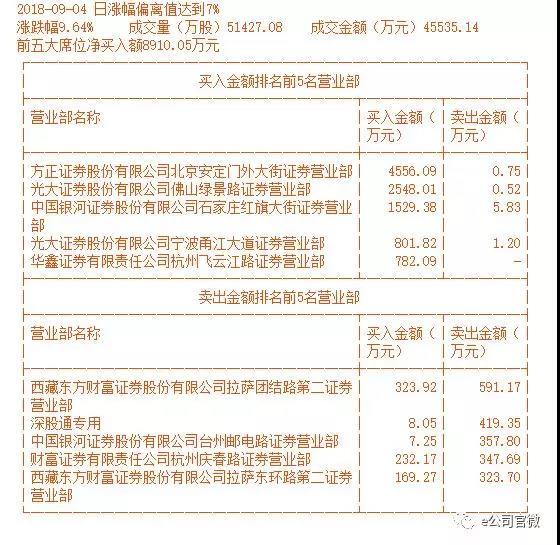 相比之下,游资对于中弘股份则采取击鼓传花接力方式,8月28日涨停的主力包括华鑫证券广州广州大道中营业部、光大证券佛山绿景路营业部,这两家营业部在次日涨停时双双出现在卖方前五席位上。