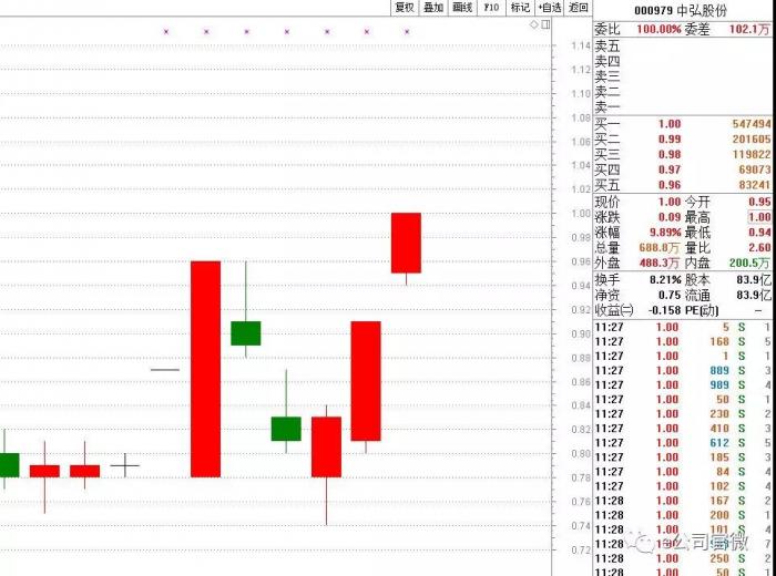 五、整个拉升过程中经常采用对敲拉升的手法,以大阳甚或跳空连续涨停板的方式强势拉升,吸引跟风盘,换手高达20%以上。