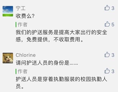 在“华工安全卫士”该条发文下,保卫处还对费用及护送人员身份的问题进行了回答。