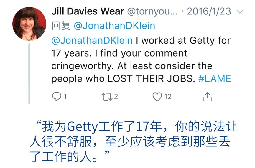 在Getty自鸣得意之下,是面临被遣散、失业的Corbis签约摄影师们的一条条愤怒留言,甚至连Getty员工都看不过眼,“我为Getty工作了17年,你的说法让人很不舒服,至少应该考虑到那些丢了工作的人。”