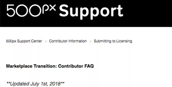 视觉中国收购后的500px在官网披露了一份“投稿人常见问题解答”。该文称,Marketplace以往表现不尽如人意,决定关停直接销售平台,完全选择由他方参与分成的分销模式。
