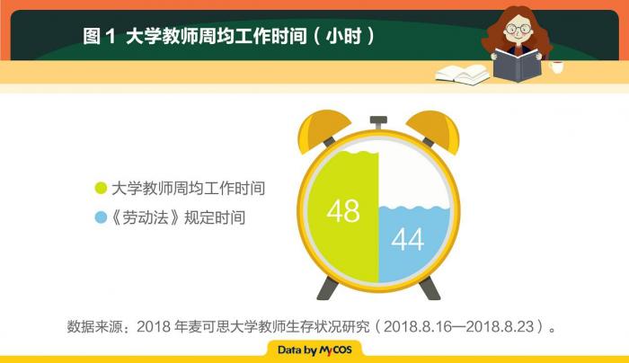 教师节将至,麦可思研究院近日发布的2018年麦可思大学教师生存状况研究显示,大学教师群体周均工作时间为48小时。按照每周5个工作日计算,日均工作时长近10小时。