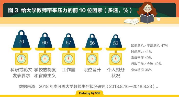 调查显示,88%的大学教师感到工作带来中重度压力,“科研或论文发表要求”(70%)成为最主要的压力来源。第二和第三位因素为“学校的制度和官僚主义”(60%)和“工作量”(57%)。