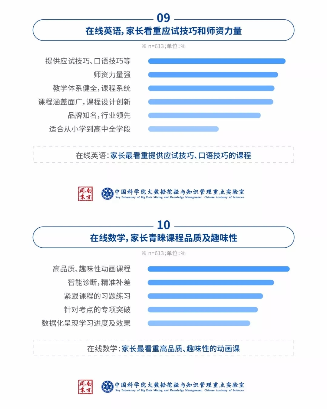 对于数学,家长的主要需求是品质高和趣味性强。英语方面,家长则更注重师生间的交流互动,对线上教育机构的师资力量等硬件配备尤为关注。目前,在线英语辅导已走在市场前列,家长的认可度和评价较高,在线数学亦有快速爆发的趋势。