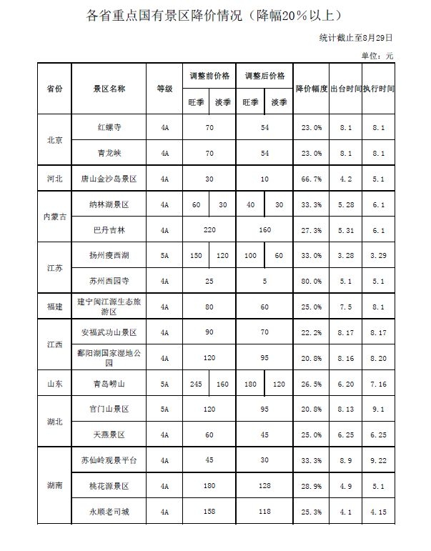 苏州西园寺、唐山金沙岛等景区门票降价幅度更是超过了60%。