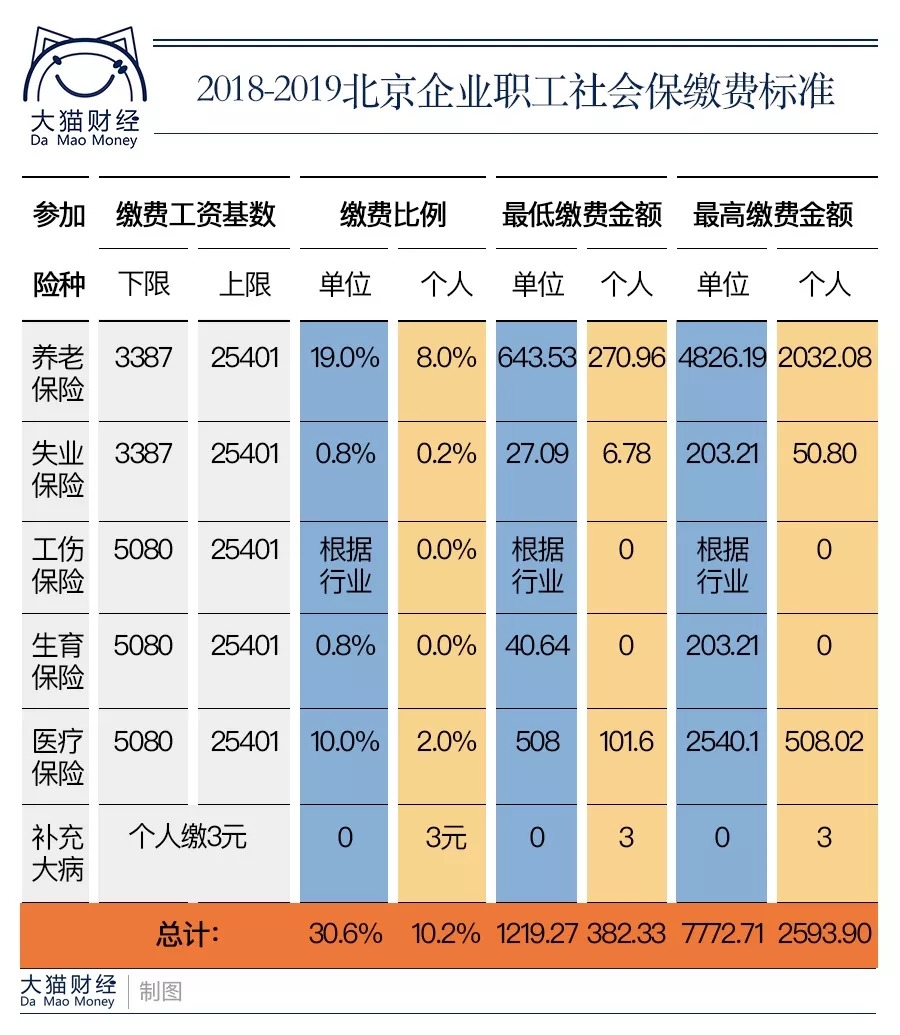 那么,社保转税务征收,按照实际工资为基数,为什么老板们这么害怕呢?因为确实影响很大,如果你不是很清楚,猫哥帮你普及下,我们以北京为例: