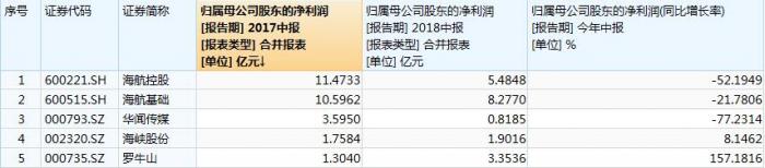 “头部”公司的经营情况也不容乐观。2018年1-6月,多家利润规模靠前的海南上市公司,扣非后净利润同比出现下滑。