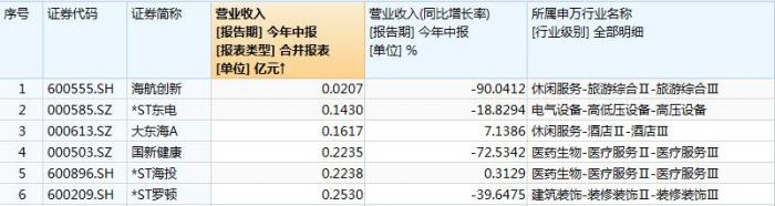 据半年报数据显示,当地6家上市公司上半年营收低于3000万元,其中海航创新半年零售更是仅有207万元,2017年同期营收则为2082万元。
