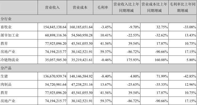 罗牛山则受制于“猪周期”,所带来的产品价格下滑,营收占比最高的生猪业务毛利率骤降42.85个百分点,至-8.40%。