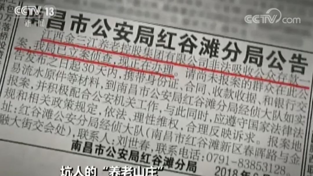 然而,像“天地自然养老山庄”出现的问题并非个案。江西另外一家养老机构,“江西老庆祥阳光社区”也因涉嫌非法集资陷入瘫痪。两起案件累计接待报案群众超过4000人,报案金额超过5.4亿元。
