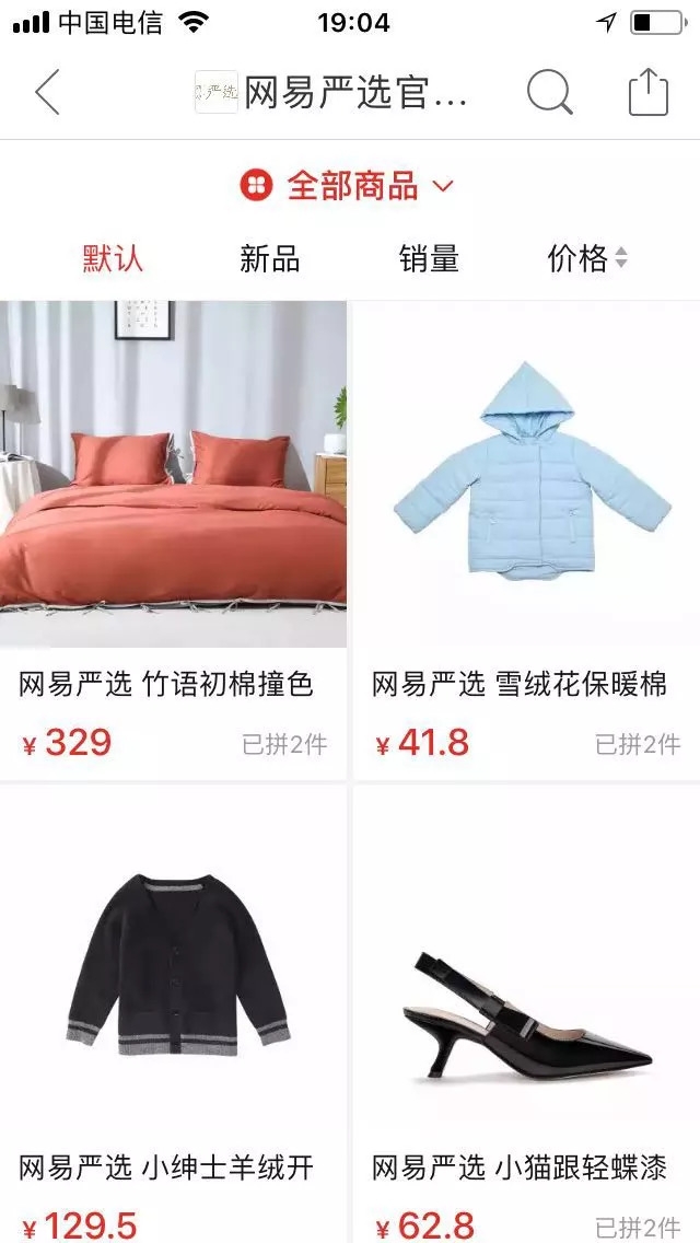 记者从拼多多APP上看到,网易严选在拼多多上的官方旗舰店主要销售服饰箱包、内衣等商品。目前该旗舰店提供了88种商品,共拼购成功600多件。在拼多多平台销量最高的网易严选商品是一款日系单肩包,截至9月12日,该商品已拼成34件。而大多数商品的拼单量都在个位数。