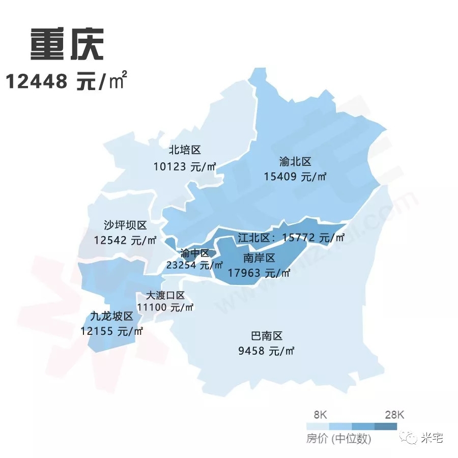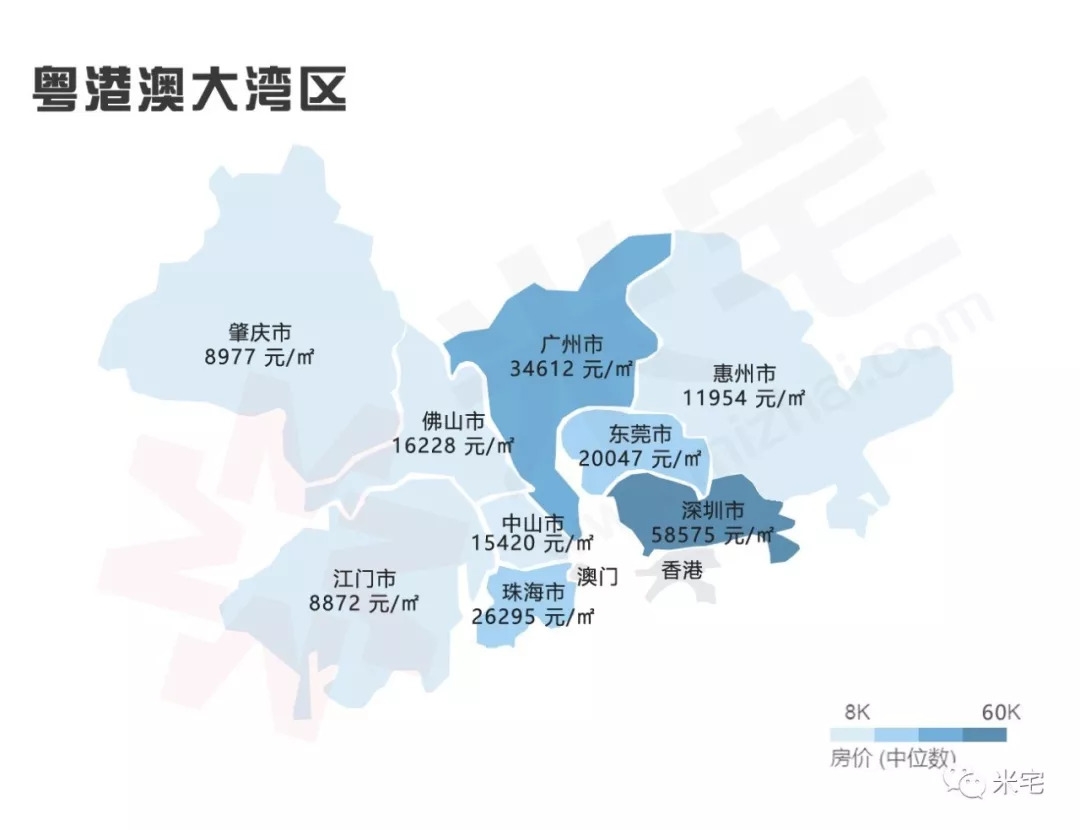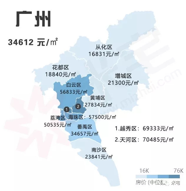 每月初,米宅将发布热点城市房价地图,包括:北京、上海、广州、深圳、天津、杭州、成都、武汉、重庆、南京、苏州、无锡、大连、青岛、昆明、三亚、合肥、海口、济南、福州、厦门、石家庄、太原、西安、长沙、郑州、南昌、宁波、粤港澳城市群。 注:因为统计口径有别,一个城市各个区域房价相差较大,所以,数据仅供参考。 说明: 1、本文数据样板,北京、上海、深圳为当月二手房成交均价(存量房市场),其他城市均为当月新建商品住宅的成交均价,涨幅为环比。 2、本文中的均价仅代表当月区域楼市成交均价,会低于区域内热门楼盘售价,区域内所有大、中、小以及迷你楼盘都会统计在内,阴阳合同、当月区域内高价盘无成交等均会影响价格。 3、本文统一采用的是行政区分类,个别城市采集到新区数据则会呈现在图中。 4、再次说明,本文中的均价仅代表当月区域楼市成交均价。 来源:米宅北京