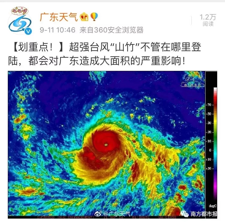 来看看刚刚广东天气发的两个微博感受一下……