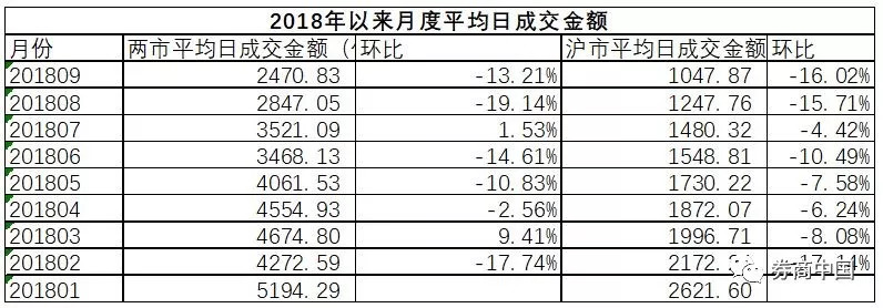 2018年以来,两市交易金额持续走低,下半年缩量的情况尤为明显。