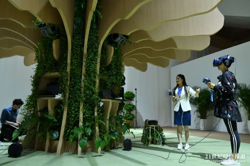 成为树是怎样的一种体验?参与者先在泥土里播下一颗种子,然后穿上VR装置进行体验。在进入热带雨林后化身为一颗树,手臂变成树枝,身体变成为树干。