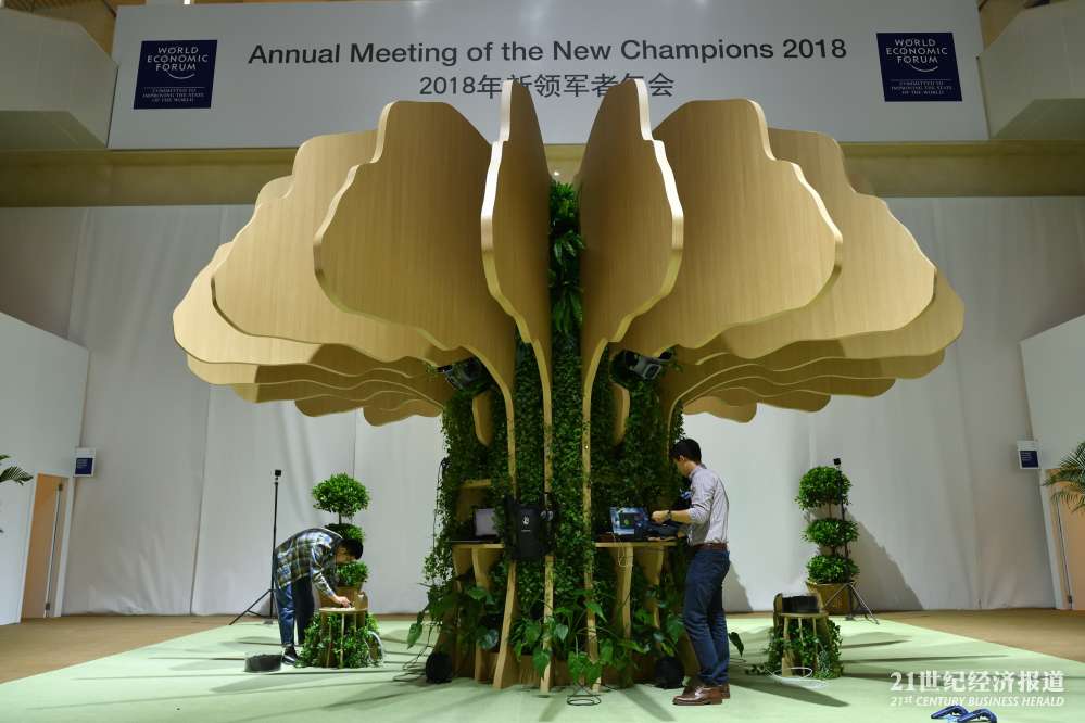 主会场“新领军者村”。本届论坛主题为“在第四次工业革命中打造创新型社会”。来自近90个国家2000余名政、商、学、媒体界代表将参会。