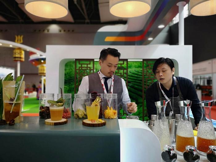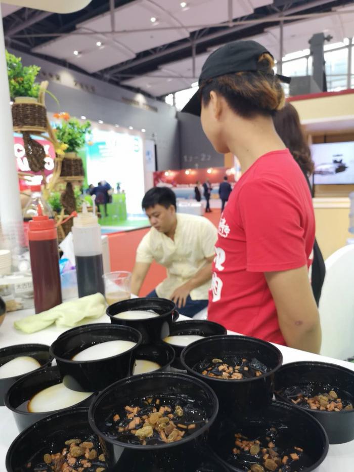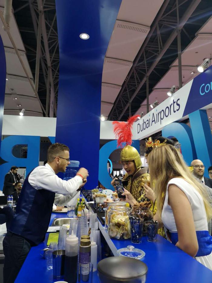 而各大机场和航司展台,倒像是地方特色小吃的展示区。比如西班牙机场把奶酪和火腿运过来,西部机场运来了凉皮,重庆机场展台的龟苓膏和甜糍粑,樟宜机场秀了新加坡特色奶茶和咖啡,桃园机场请来了特色乌龙茶(制作的乌龙茶像鸡尾酒一样炫),武汉机场的小面我连拍都没拍都没拍到,因为早就被抢光了!部分如苏格兰机场和都灵机场等偏重推介他们的威士忌等酒。