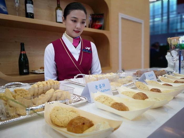 不过,美食诱惑也分档次的,国内企业也有不少不争气的,首都机场放的几包茯苓饼看着就没食欲,南航的老婆饼要不是饿极了,估计也没人去拿来吃呢……看来国内参展观念要改一下了哦。