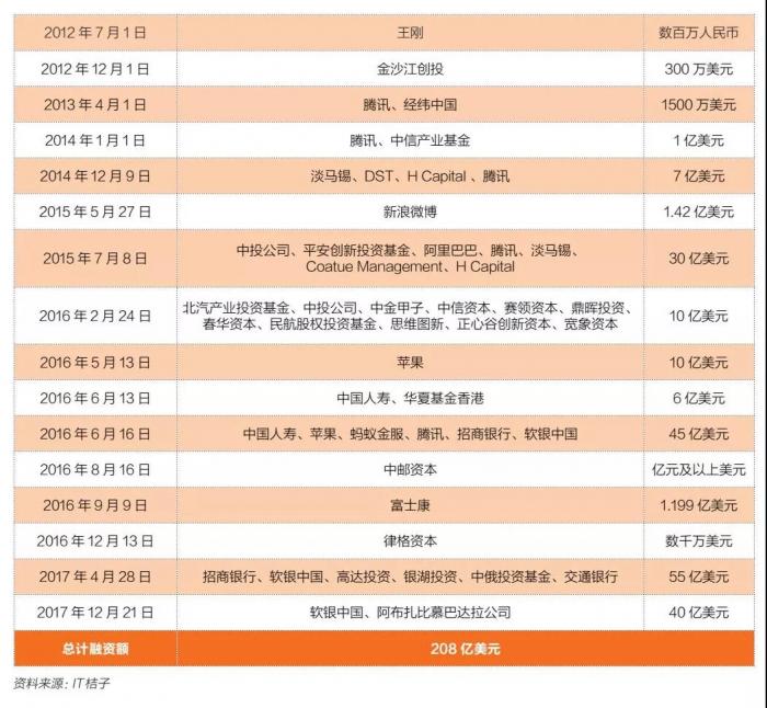 表1:滴滴历次融资图