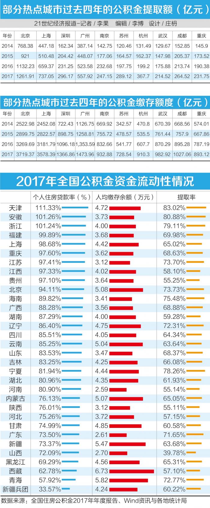 2017年末,上述超警戒线的16个地区,其住房公积金缴存余额总和达到29873亿元,占到全国缴存余额的近60%。
