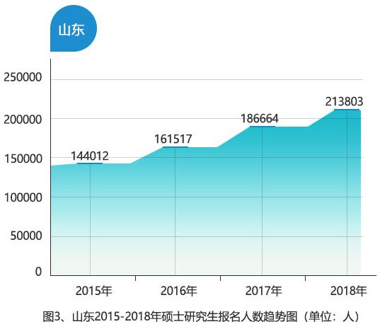 山东作为生源大省,2018年考研人数达213803人,同比增长14.54%,为历年最多。