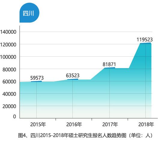 2018年,四川省报名人数再度飙升,有效报名人数达到了119523人,较2017年增加了37583人,增幅为45.87%。