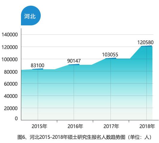 2018年河北省共报考120580人,比2017年增加17525人,增幅为17.0%。报名人数和增幅均创历史新高。