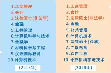 由此可见,工商管理、会计、法律硕士(非法学)连续数年成为报考专业的前三甲,依然是最热门的专业。
