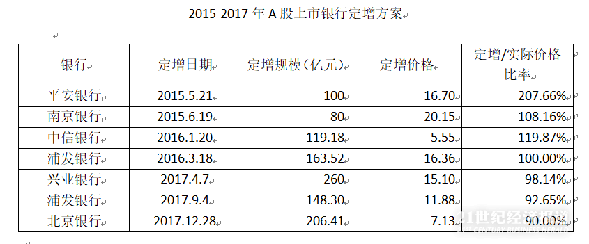 银行定增价格一路下行