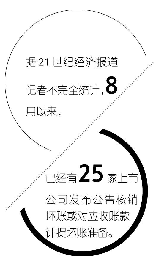 但对A股市场上部分企业而言,坏账损失已经成为侵蚀业绩的重要指标。据21世纪经济报道记者不完全统计,8月以来,已经有25家上市公司发布公告核销坏账或对应收账款计提坏账准备。