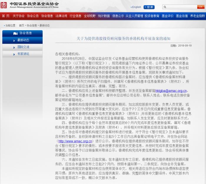 对已提供港股投资顾问服务的香港机构,应当于11月19日内补充备案,相关文件为《香港机构备案材料清单》、《香港机构基本信息备案表》。