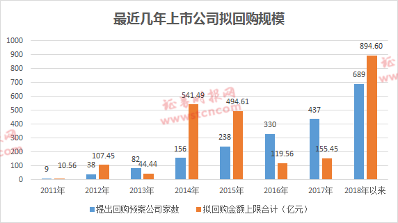 相较之下,2018年以来提出回购预案的公司数量合计已达到689家,拟回购金额上限值合计接近900亿元,回购股份已成为上市公司一项相当常态化的动作。