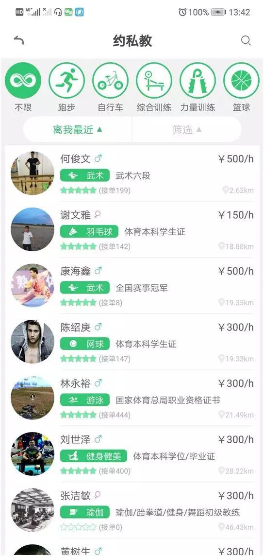 因为需要具备相关等级证书,体院学生、教师是该平台最主要的私教来源。