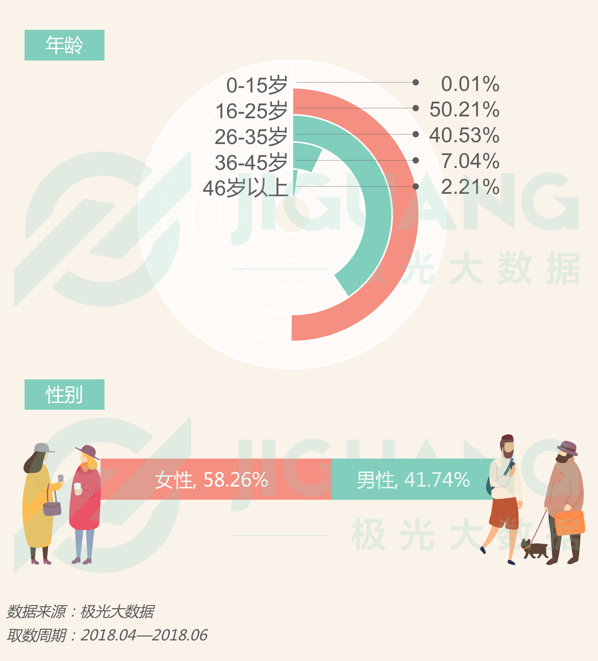 根据极光大数据统计,喜茶&奈雪の茶人群中,女性占比高达58.26%。16-25岁年龄段人群是喜茶&奈雪の茶人群主力军,占比超过五成。