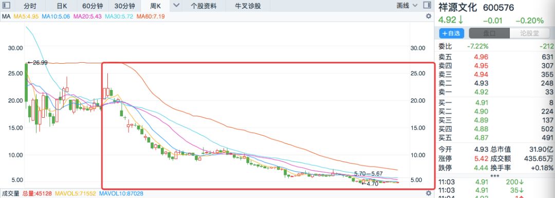 起诉材料显示,来自上海的王女士在2017年1月24日至26日期间,合计买入万家文化(现“祥源文化”)10000股,均价20.94元每股,至今仍持有。经律师计算,索赔金额9.6万元,其中包括:投资差额、佣金、印花税、利息损失。截至9月19日收盘,祥源文化的股价为4.93元每股,比原告王女士入股时缩水了76%。