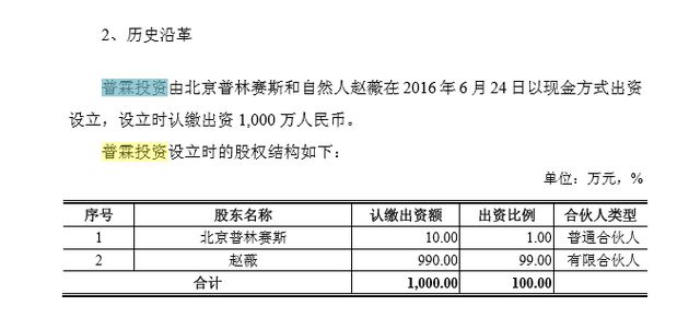 另据此前万家文化披露的普霖投资股权结构显示,该公司注册资本1000万元,赵薇出资认缴额为990万,作为LP直接持股99%,北京普林塞斯作为GP持股1%。