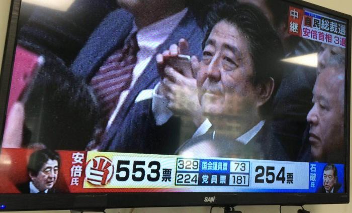 当地时间9月20日下午3点左右,安倍晋三打败石破茂连任自民党总裁的消息传出,这也意味着安倍晋三将连任日本首相,再获三年任期。